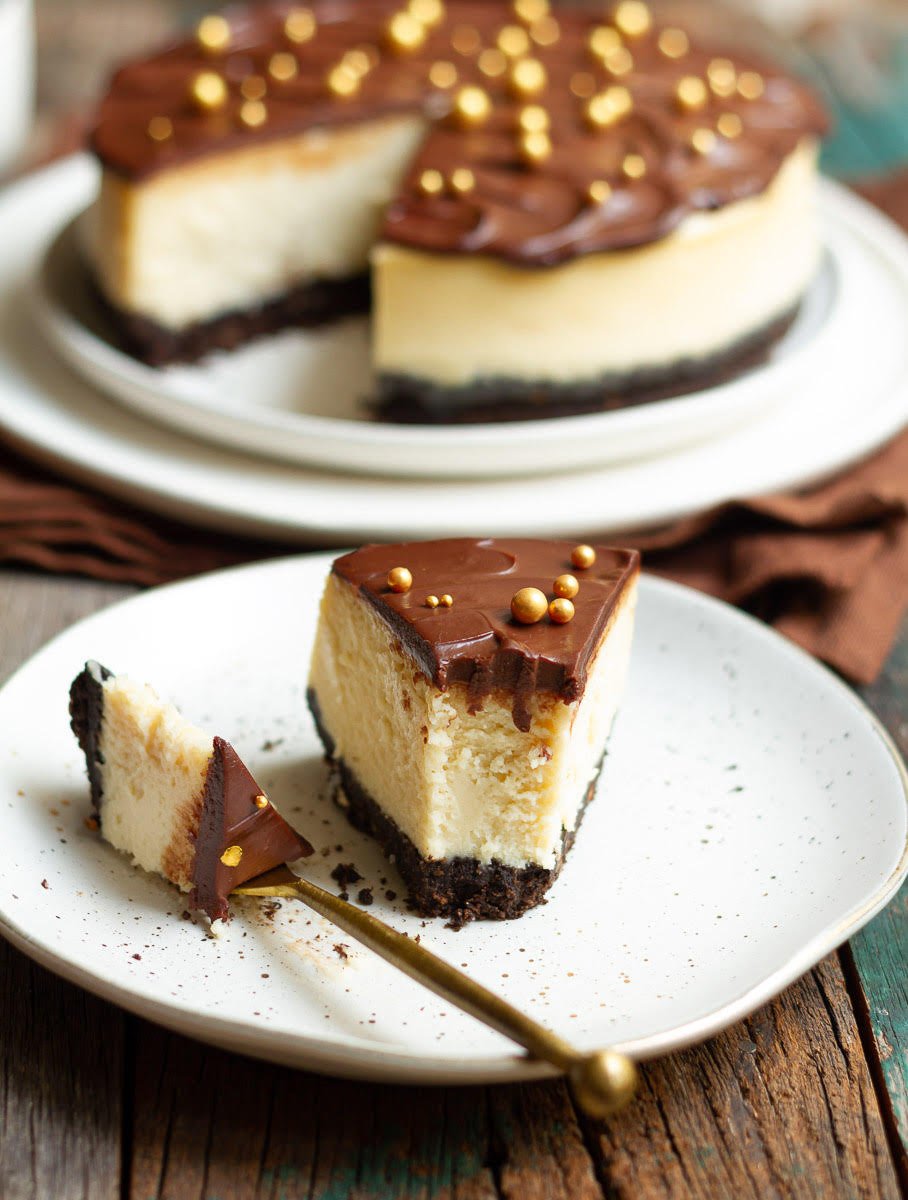 Baileys: The cheesecake and the ganache have a deeply boozy flavor of Baileys. Of course, thatโs my preference. Want a more intense flavor? Increase the quantity of Baileys you add to the ganache.